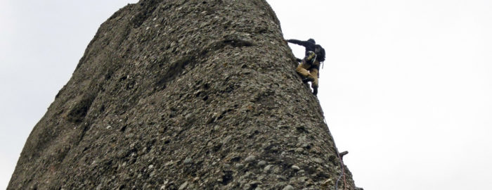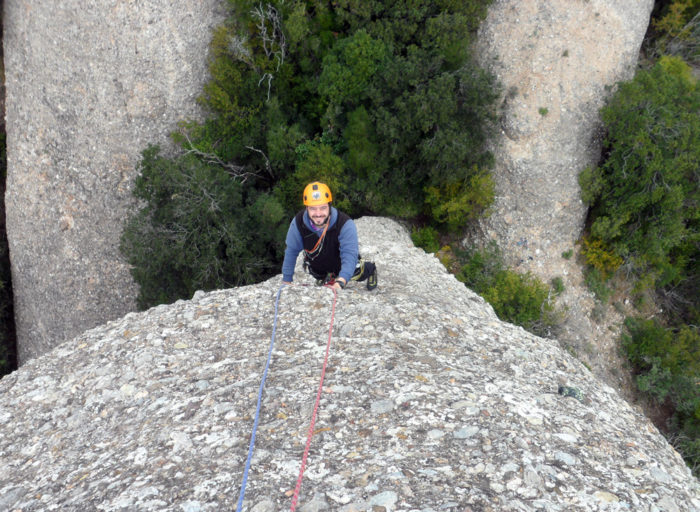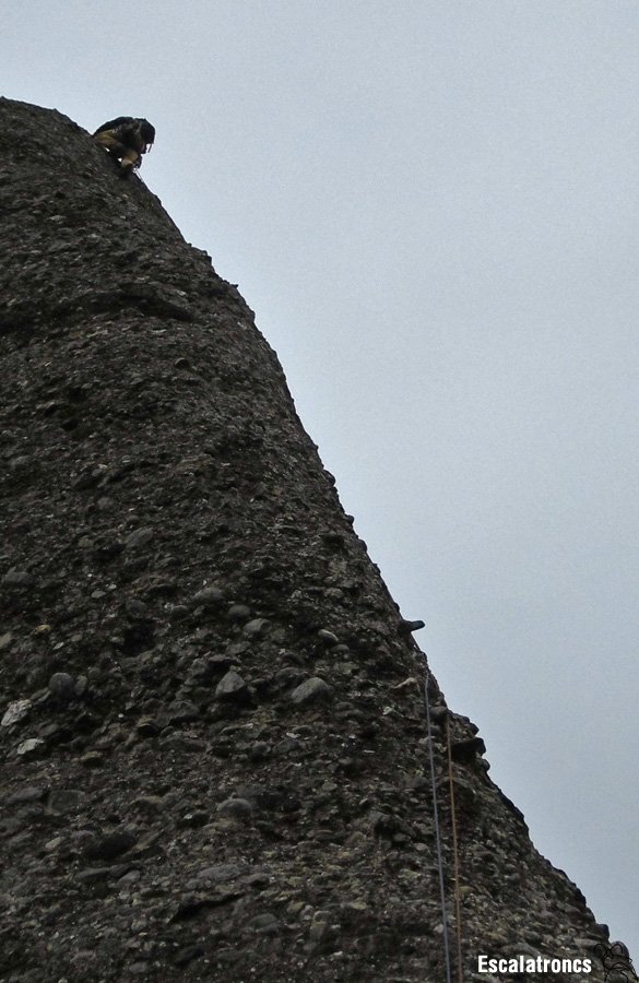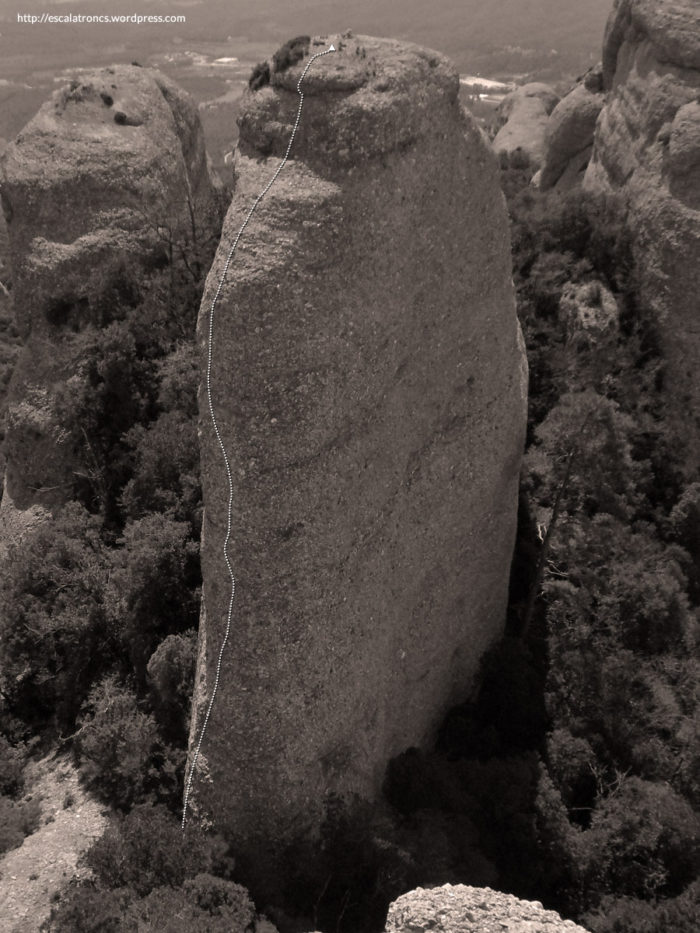 Un llarg de corda ens duu al cim d’aquesta bonica agulla. Escalada bastant vertical i amb bons agafadors, toca navegar una mica a dreta i esquerra per trobar el pas més senzill. Podrem llaçar un merlet de marbre força evident i emplaçar algun friend; els tricams també poden anar molt bé.