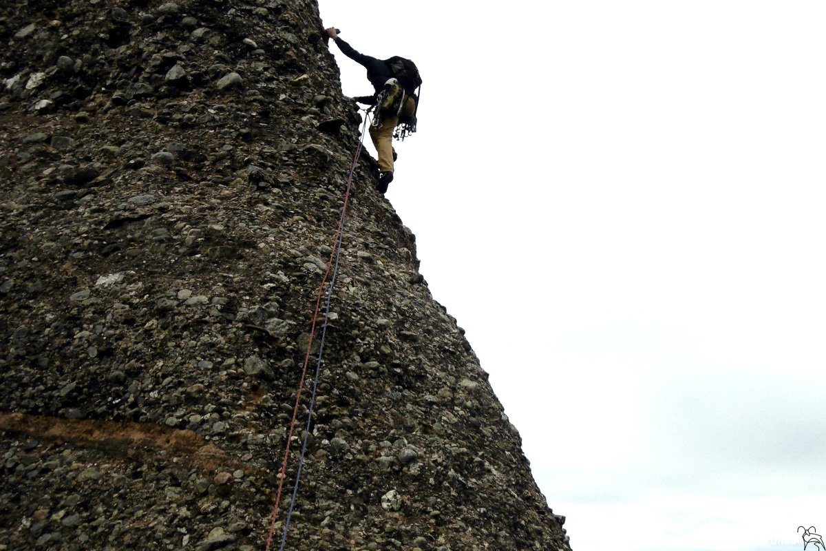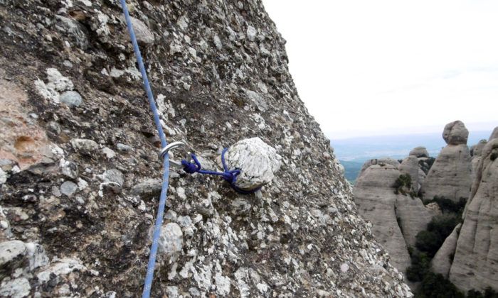 - Material: 6 cintes, Camalot #0.75, alien groc i bagues per merlets.