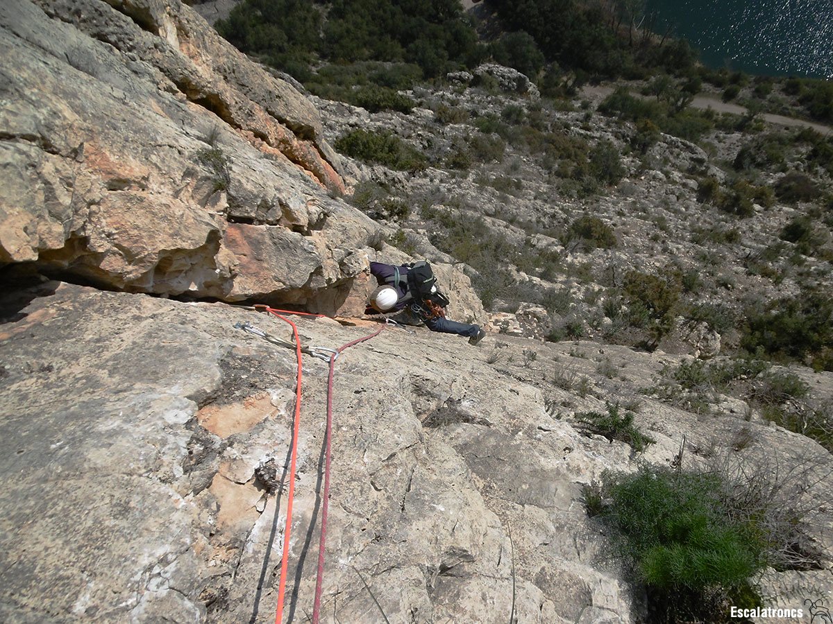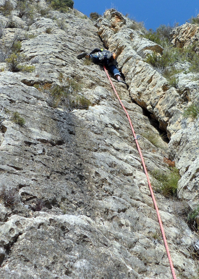 La primera té un parell de passos d’Ae per superar un extraplom, la tercera ressegueix un parell de diedres ben divertits, amb passos elegants i roca sanejada. I la cinquena és la cirereta del pastís, un altre diedre amb cantell més que generós, per gaudir de baix a dalt.