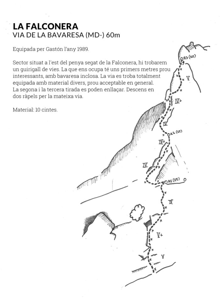Situat al costat mateix del Port Esportiu del Garraf el penya-segat de la Falconera ofereix un interessant terreny de joc per l’escalada clàssica. A la banda est de la paret, a la part amb menys ambient trobem la via de Bavaresa. En aquest sector, hi trobem un bon guirigall de vies i material, fet que a vegades fa difícil seguir les línies.