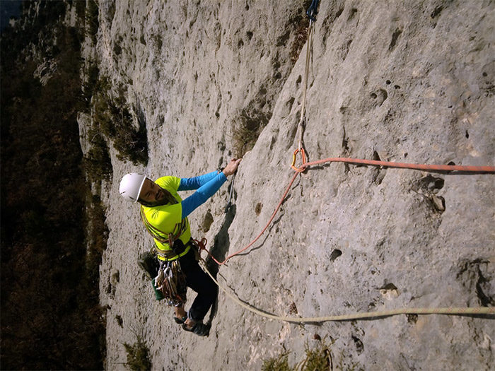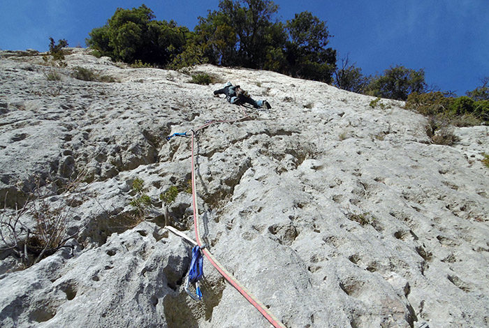 Un ràpel de 50 metres fins la primera reunió i d’allà un altre al terra.