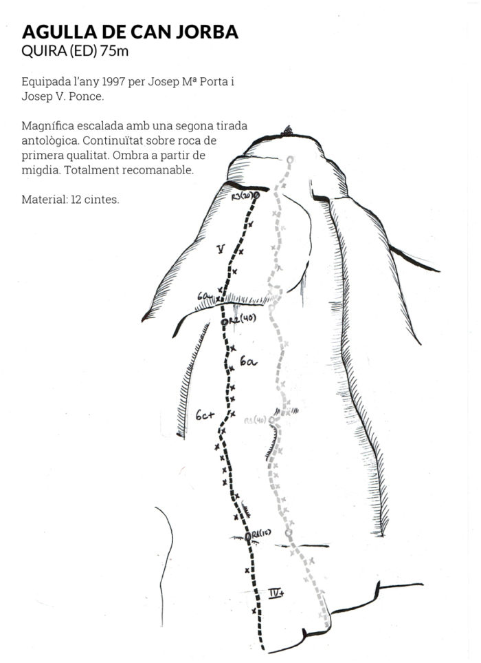 Via esportiva totalment equipada amb parabolts i feta de la mateixa roca que la seva veïna però amb una segona tirada de traca, un mur de pura continuïtat amb una part central lleugerament extra plomada que obliga a posar-hi els cinc sentits. Molt recomanable.