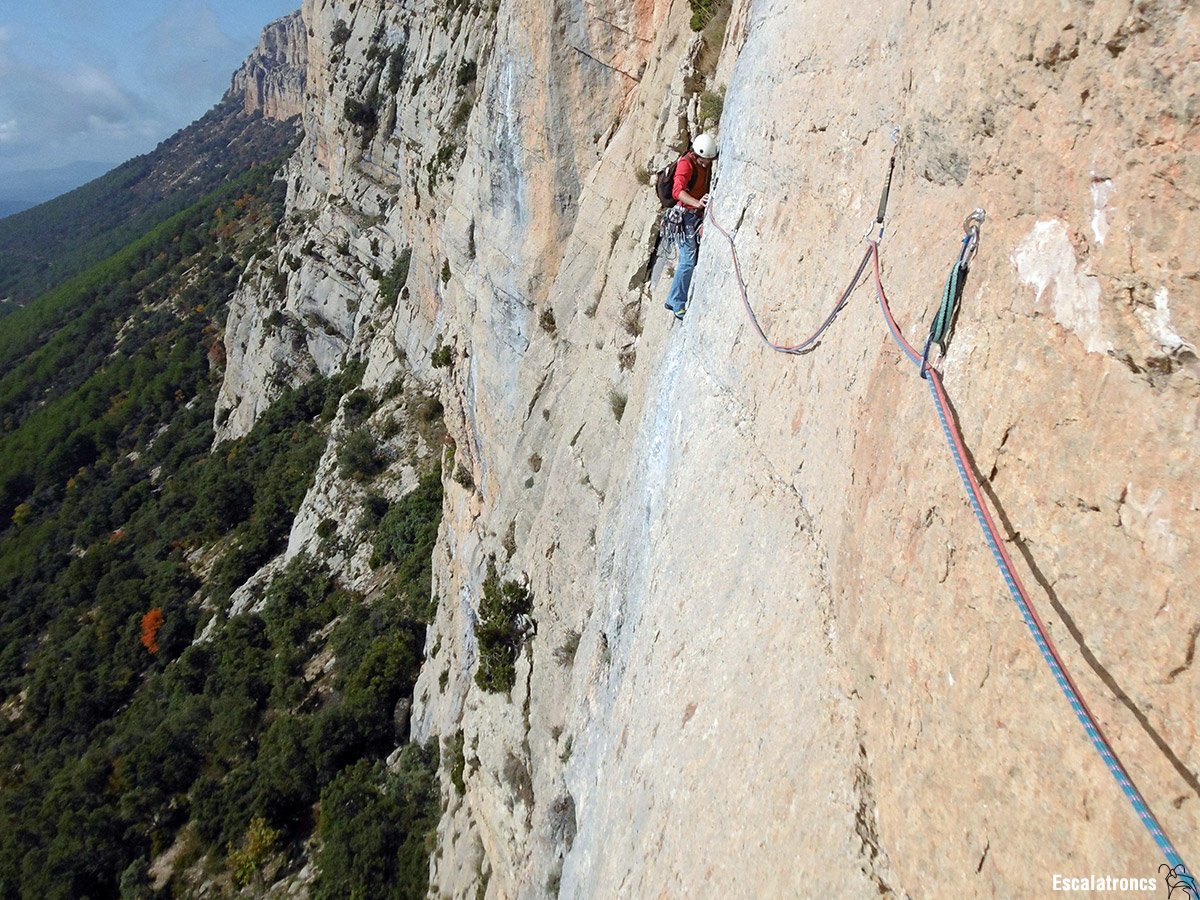 Els perepunyetes direm que li sobren la meitat de les expansions, per exemple a la quarta tirada, on s’expansiona al costat d’una bona fissura o que el pont de roca fet amb el trepant sobra, o que la trave de la tercera tirada podria anar un metre per sota, però ja se sap que estem carregats de romanços.