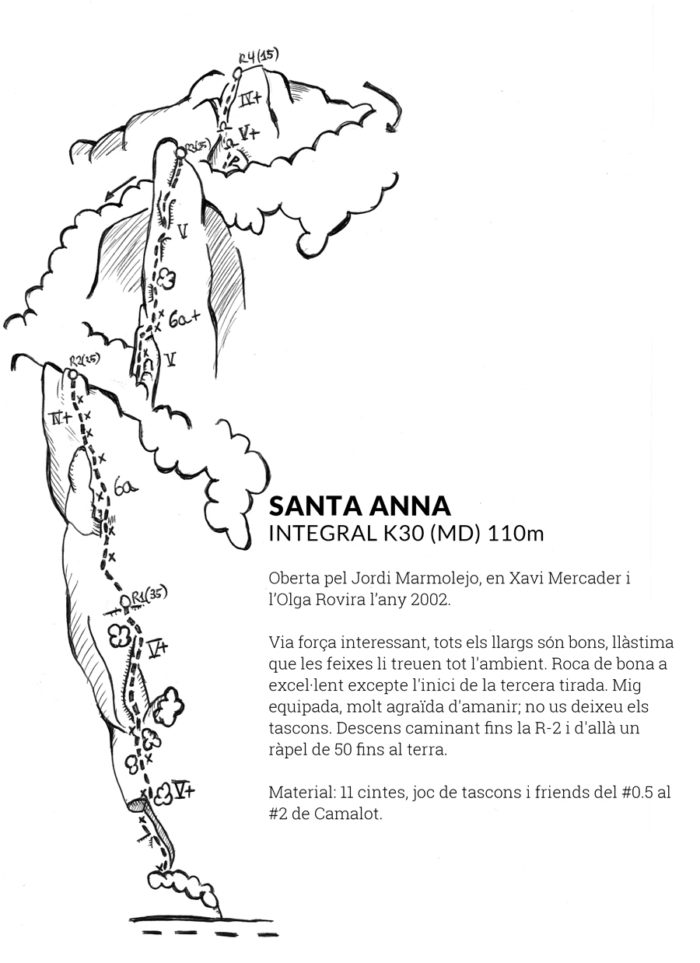 A Santa Anna si respira tranquil·litat. Una mica lluny de tot arreu i amb unes parets d’alçades més aviat modestes no esdevé un objectiu prioritari, tenint relativament a prop propostes de molta més entitat. No obstant això una visita al lloc sorprèn a les ànimes més enfiladisses àvides de nous llocs i rocam de qualitat.