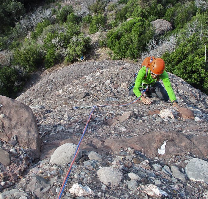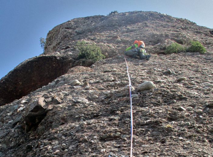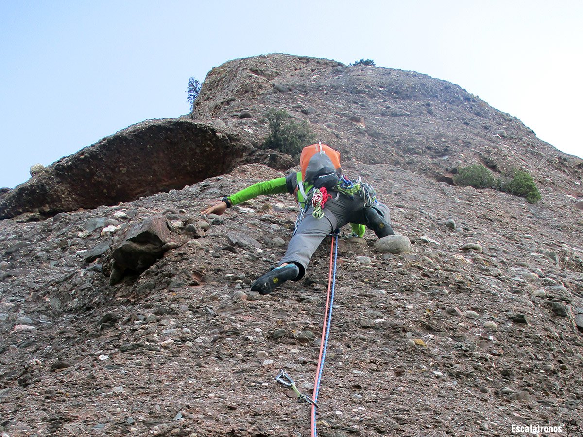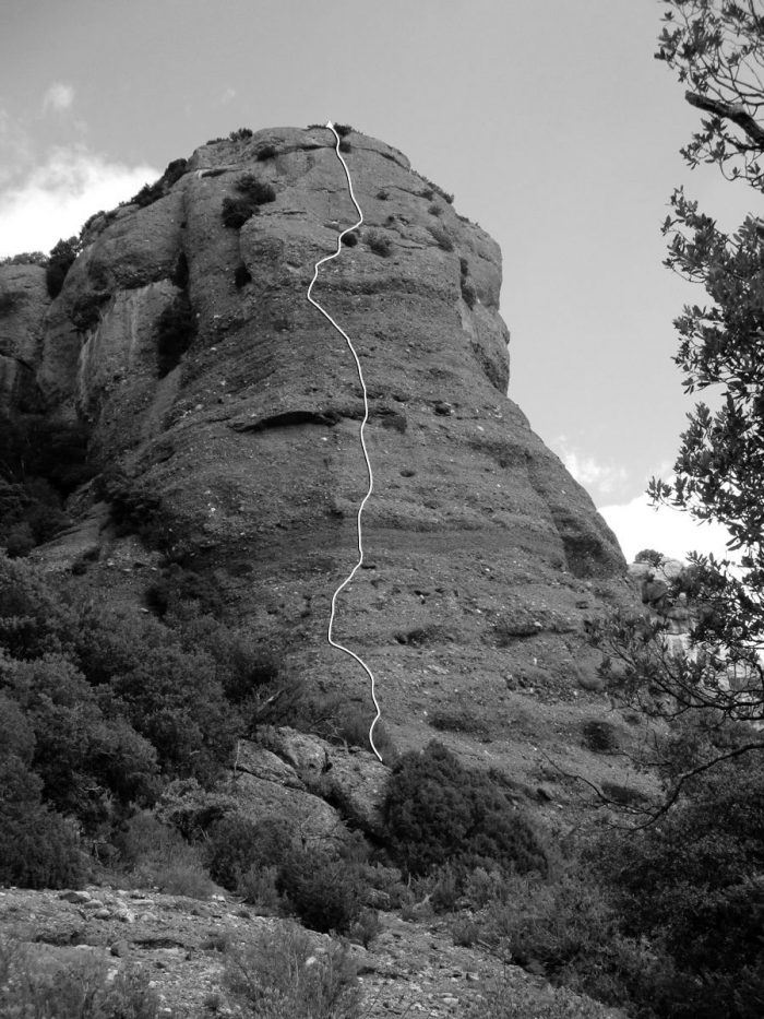 Via completament equipada. El darrer llarg de corda és el més bonic, escalada en placa i sobre roca de primera qualitat. Ràpida i combinable amb alguna via veïna