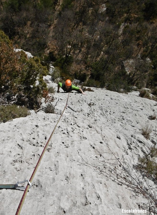 - Equipament: Via equipada amb parabolts, algun pont de roca i claus.