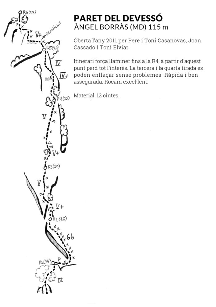 L‘Àngel Borràs no deixa de ser una més de les moltes vies que trobem a la crivellada paret del Devessó.