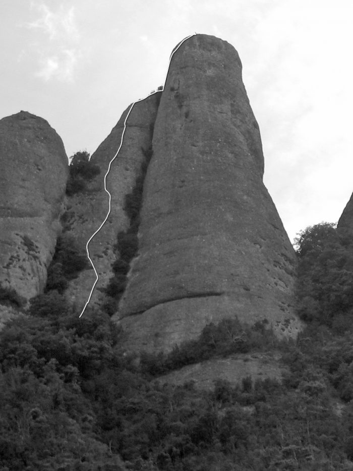La Charlot és una via més interessant del que pugui semblar a priori. L’itinerari ressegueix una mena de columna adossada a l’agulla principal. Per arribar al cim aprofitarem el darrer llarg de corda de la via Normal. La roca és bona i les preses franques. Ràpida d’escalar podem completar la jornada amb alguna altra via del sector.