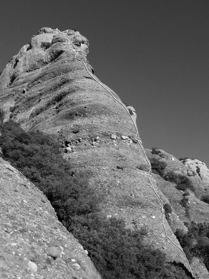 Via de dificultat moderada completament equipada. Trobem el pas més difícil a la primera tirada on s’ha de superar una panxa. El darrer llarg de corda és el més bonic, amb una escalada que va a buscar una evident fissura, on trobem els passos més elegants.