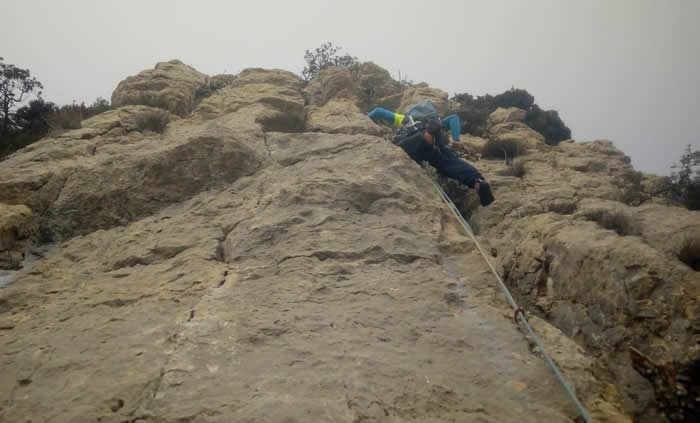 - Equipament: Via semi equipada amb pots de roca i claus