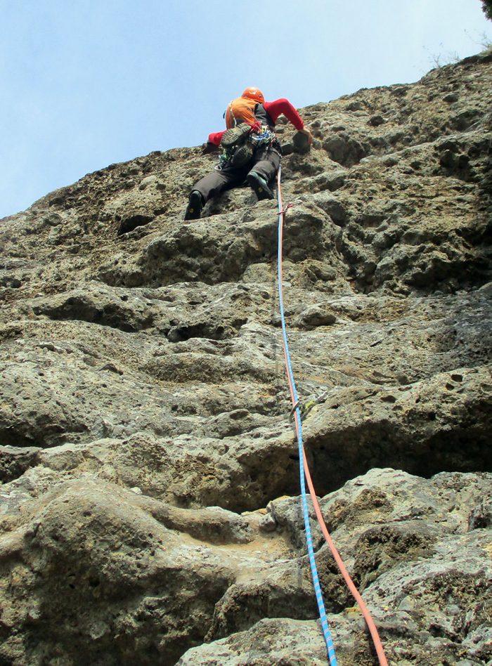Les dues primeres tirades són verticals i ben boniques, tot un gaudi. Després la via perd empenta fins al darrer llarg de corda on aprofita una bonica placa diferent de tota la resta. Via per un dia que no tinguem ganes de patir i sí torrar-nos al sol hivernal.