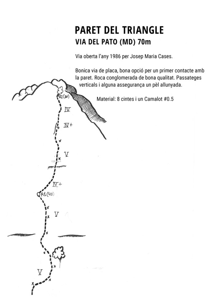 La via del Pato és una de les clàssiques de la paret. Equipada amb certa alegria s’enfila per un rocam de qualitat fins al capdamunt de la paret. Dues tirades delicioses per fer un tastet d’aquesta bonica raconada.