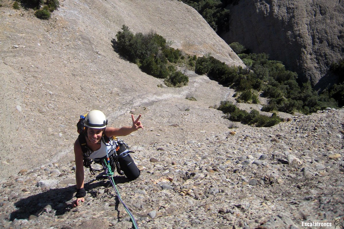 • Roca discreta, tot i que és millor del que sembla. A mida que anem guanyant metres la roca també guanya. Potser amb més repeticions la via quedarà més sanejada.