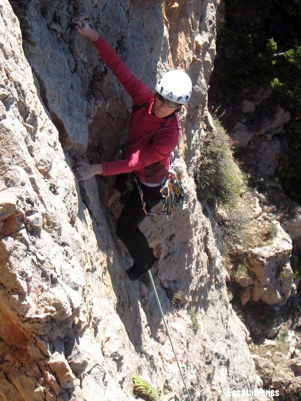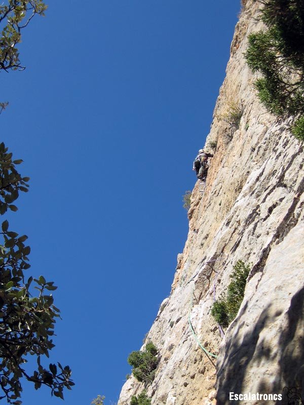 Aquesta tirada és la perla de la via. Comencem a pujar per un diedre perfecte: bones mans, bons peus i una ampla fissura per si no en tenim prou. El diedre queda barrat per un gran bloc que ens obliga a sortir-ne per l’esquerra. Ara arribem a una zona més descomposta i hem d’anar a buscar el diedre de l’esquerra, no tant estètic com el primer, però més fàcil. Al darrers metres haurem d’anar cap a la dreta per una mena de xemeneia fàcil que ens mena fins a la reunió. 45 metres.