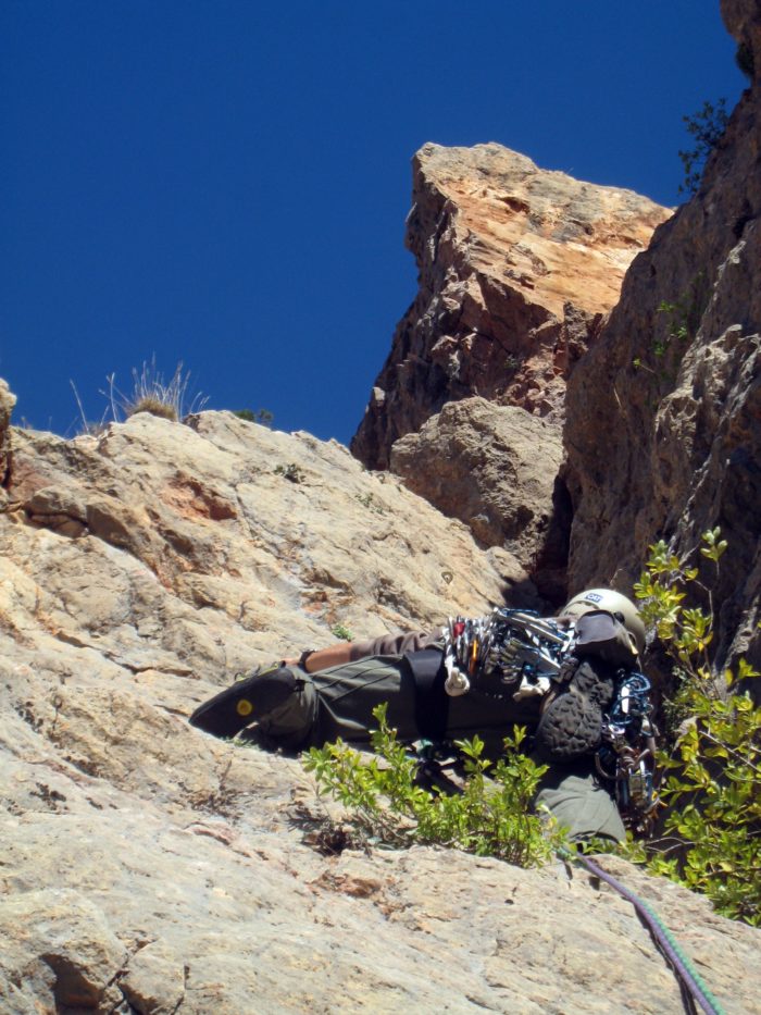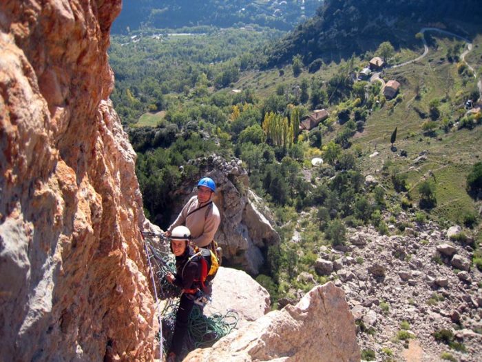 - Algun tram amb roca una mica dubtosa, sobretot a la sortida de la tercera reunió i després de sortir del primer diedre de la darrera tirada.