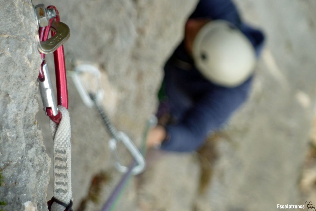 Sortim recte amunt de la reunió. Trobarem un primer tram amb bona presa. A partir del segon parabolt tenim una secció més tècnica, on les preses es tornen més escadusseres obligant-nos a posar bé els peus. Un cop a l’alçada del tercer bolt hem d’anar una mica a la dreta, on trobarem preses més franques que ens permetran superar el tram. Seguidament bé una part amb bona presa fins que passem a la paret de l’esquerra, vertical però amb cantell molt bo. Fem la reunió a una petita lleixa. 25 metres.
