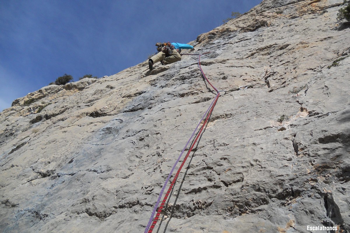 - Material: 10 cintes exprés, semàfor d’aliens i friends fins el #2 de Camalot, discret joc de tascons i alguna baga
