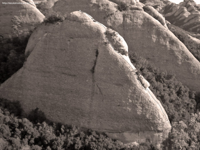 Podem pujar desencordats fins un llavi característic on muntem la R-0 aprofitant uns arbres. Des d’aquest punt guanyem un petit mur vertical on podrem emplaçar alguna peça;al cap de pocs metres perd empenta i una mica més amunt trobarem l’única expansió de progressió de la via. Un cop a l’alçada del sostre característic hi ha una falsa reunió; la deixem a mà dreta resseguint un diedre que mena sobre la berruga, el diedre es pot protegir al gust (savines i Camalot #0.75). Uns metres més amunt podem muntar la reunió a unes savines o bé aprofitar la de la via “Escarbat del Faraó”. El segon llarg marxa per terreny una mica trencat però de seguida perd empenta i es converteix en una senzilla grimpada que mena directament al cim.