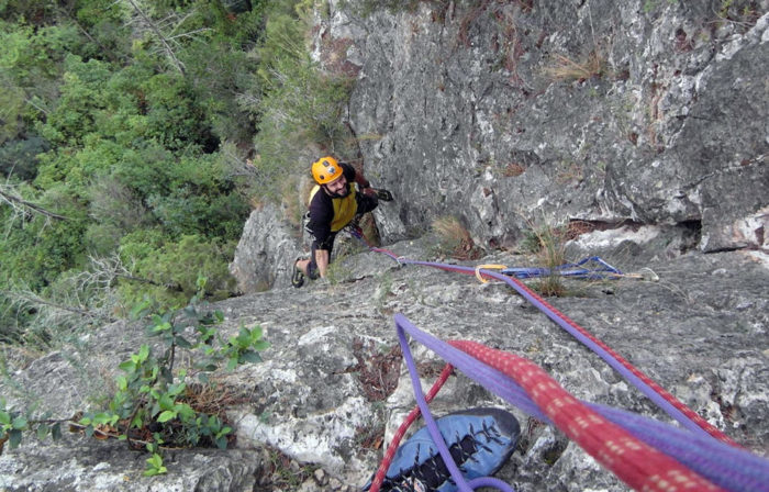 Un ràpel de 58 metres pel vessant oest (Es pot fraccionar donat que totes les reunions són rapelables).