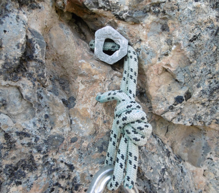 • Equipament: Mig equipada amb claus, algun bolt i pont de roca. Reunions rapelables