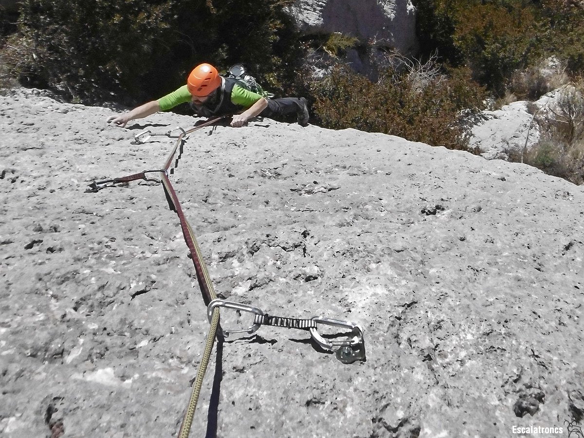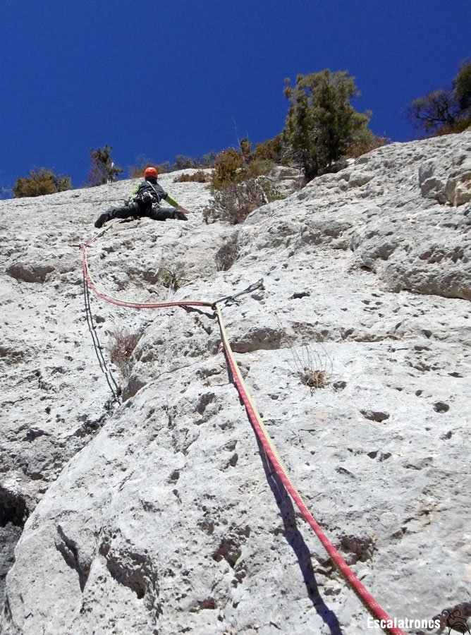 Com totes, aprofita amb avarícia el peculiar calcari d’aquest singular frontó del Berguedà per traçar-hi una línia irregular, amb una primera part excel·lent i un final per oblidar. L’equipament, com a la majoria de vies del sector, per no passar cap mena d’angúnia.