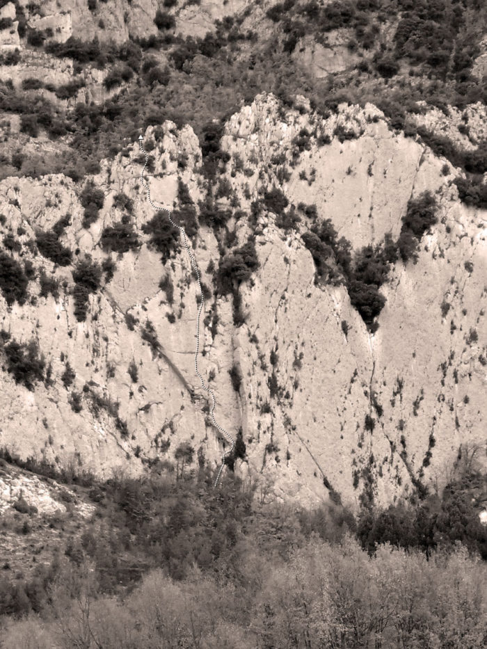 La via té dues parts ben diferenciades. Un cop superat la primera tirada de tràmit, tenim tres llargs excel·lents, mantinguts i amb un rocam de primera; a destacar la segona tirada, amb un desplomet ben xulo i una continuació força tècnica.
