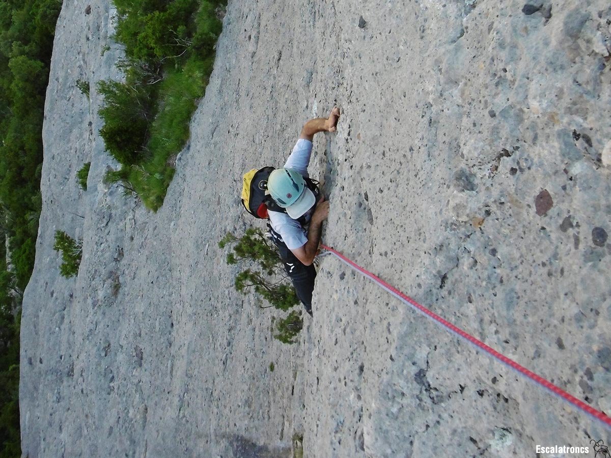 De recorregut sinuós, la via és absolutament lògica, cercant en tot moment les debilitats de la Paret. El llarg més exigent és el segon, on toca fer algun pas obligat amb l’assegurança i la lleixa als peus. Les dos tirades de després del bosc tenen algun tram exposat però fàcil i amb alguna crosteta. El darrer llarg navega a dretes per un mur vertical, és la cirereta del pastís.
