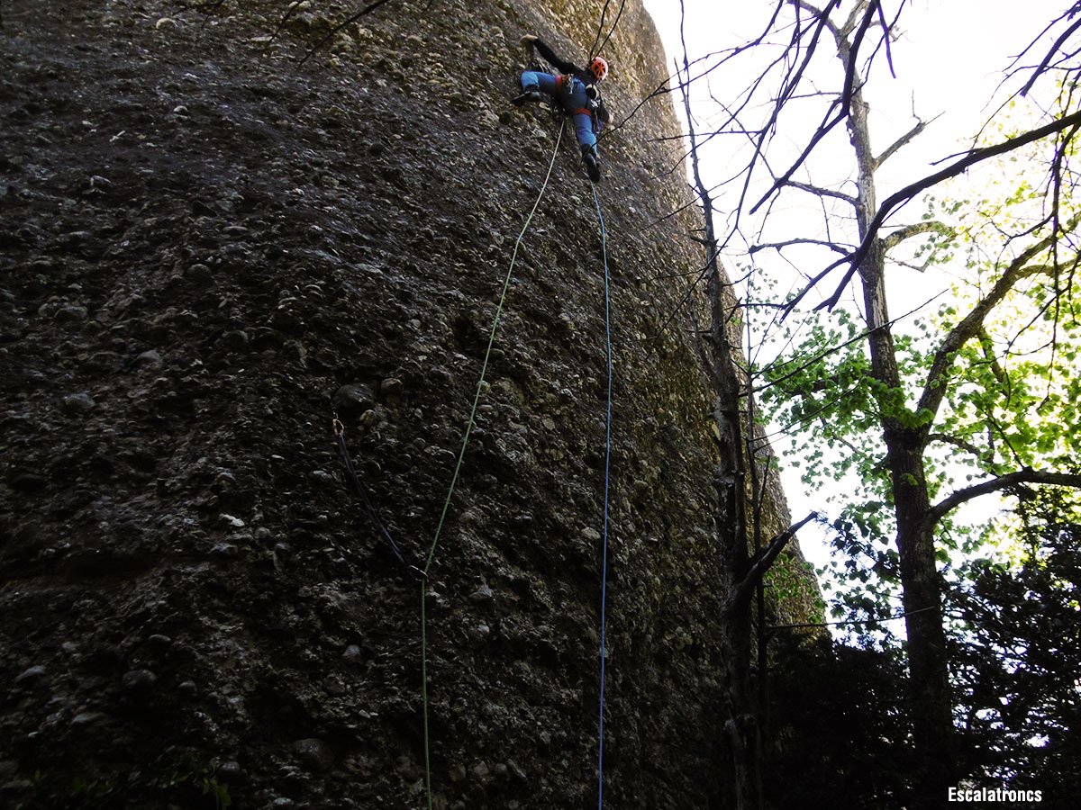 - Material: 6 cintes, bagues per merlets, una plaqueta recuperable i Camalots #0.75 i #1