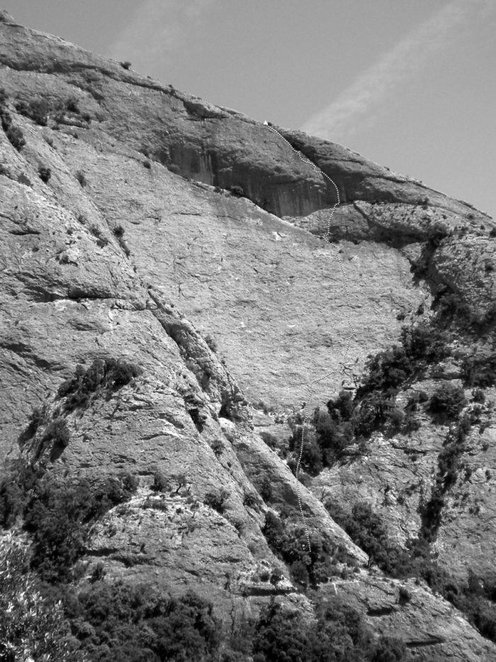 Seguim el corriol fins que trobem una desviació a mà dreta que ens porta a la cara oest de La Pastereta. Flanquegem cap a l’esquerra per sota de la via Diedre Bonington. Seguim fins que trobem un trencall que puja fins al peu de via amb alguna corda fixa al tram final.