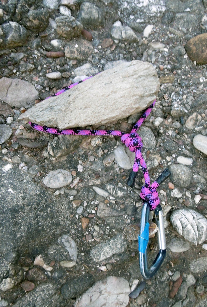 La via continua amb una tirada pel fil de l’esperó, on cal escalar a poc a poc. Aquesta tirada l’estirem fins a un arbre (bagues).