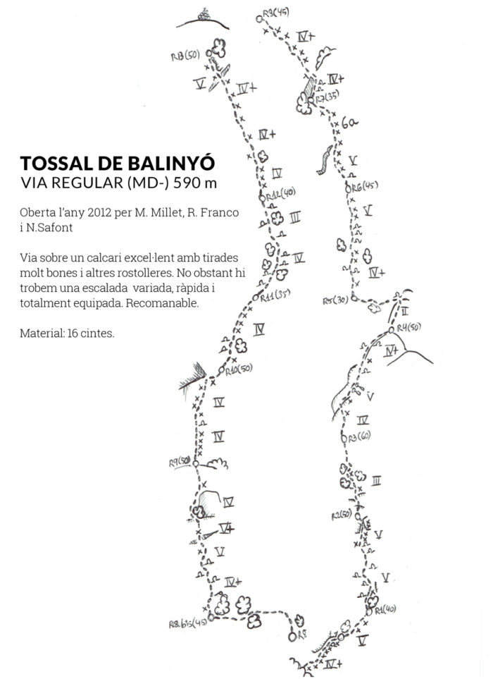 El vessant sud de la Roca Narieda, o el que és el mateix, el Tossal de Balinyó, esdevé un dels millors indrets per deixar-se caure quan les temperatures es desplomen. Encarat al sud i a recer dels gèlids vents del nord, la paret esdevé un agradable solàrium amb un calcari més que excel·lent. Malauradament no tot és perfecte i és que malgrat no afectar gens, l’abundant vegetació li resta qualsevol mena d’ambient.