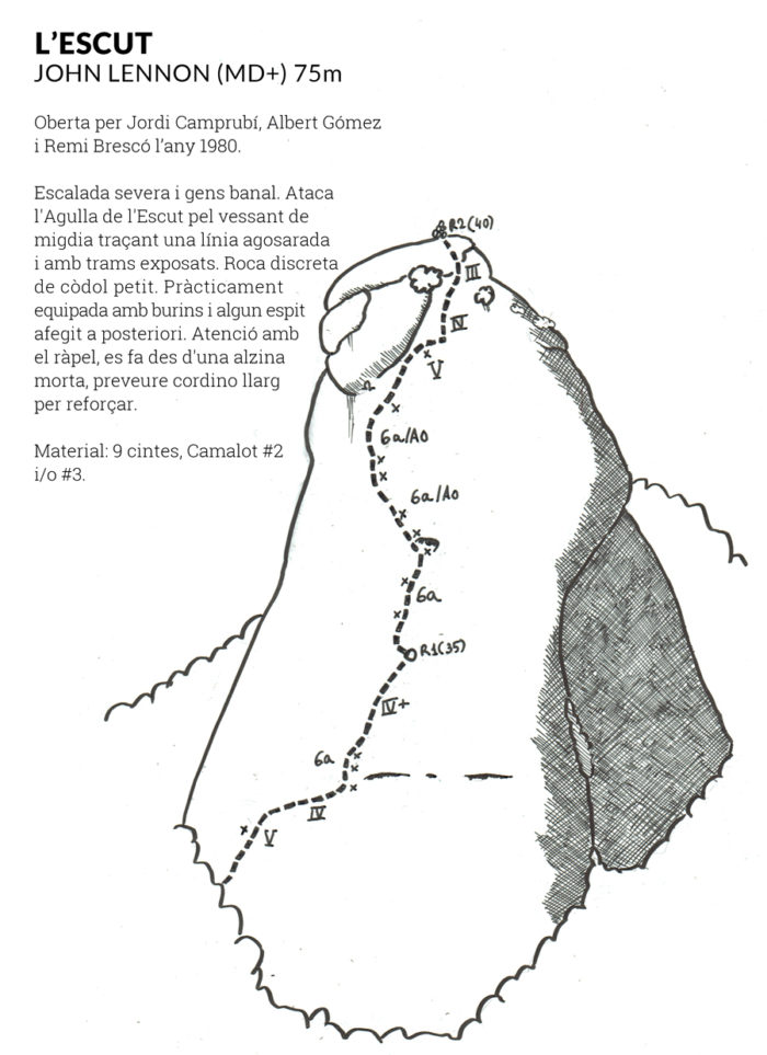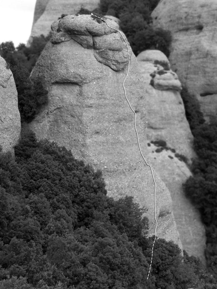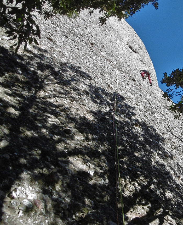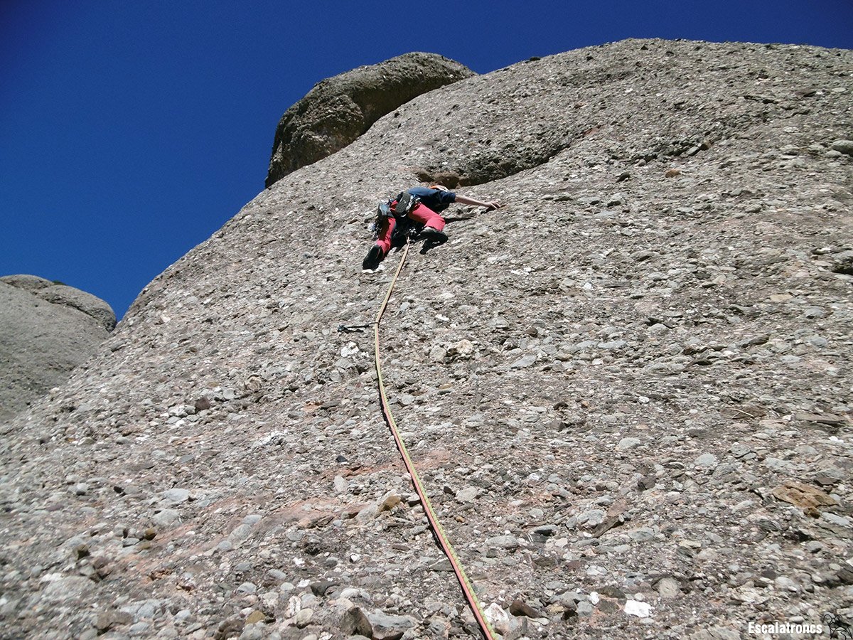 Via compromesa tant pels trams exposats com per la fiabilitat del rocam. La tirada clau és la segona, amb una sortida vertiginosa d’un forat característic que demana concentració màxima.