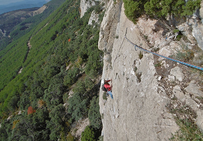 Els perepunyetes direm que li sobren la meitat de les expansions, per exemple a la quarta tirada, on s’expansiona al costat d’una bona fissura o que el pont de roca fet amb el trepant sobra, o que la trave de la tercera tirada podria anar un metre per sota, però ja se sap que estem carregats de romanços.