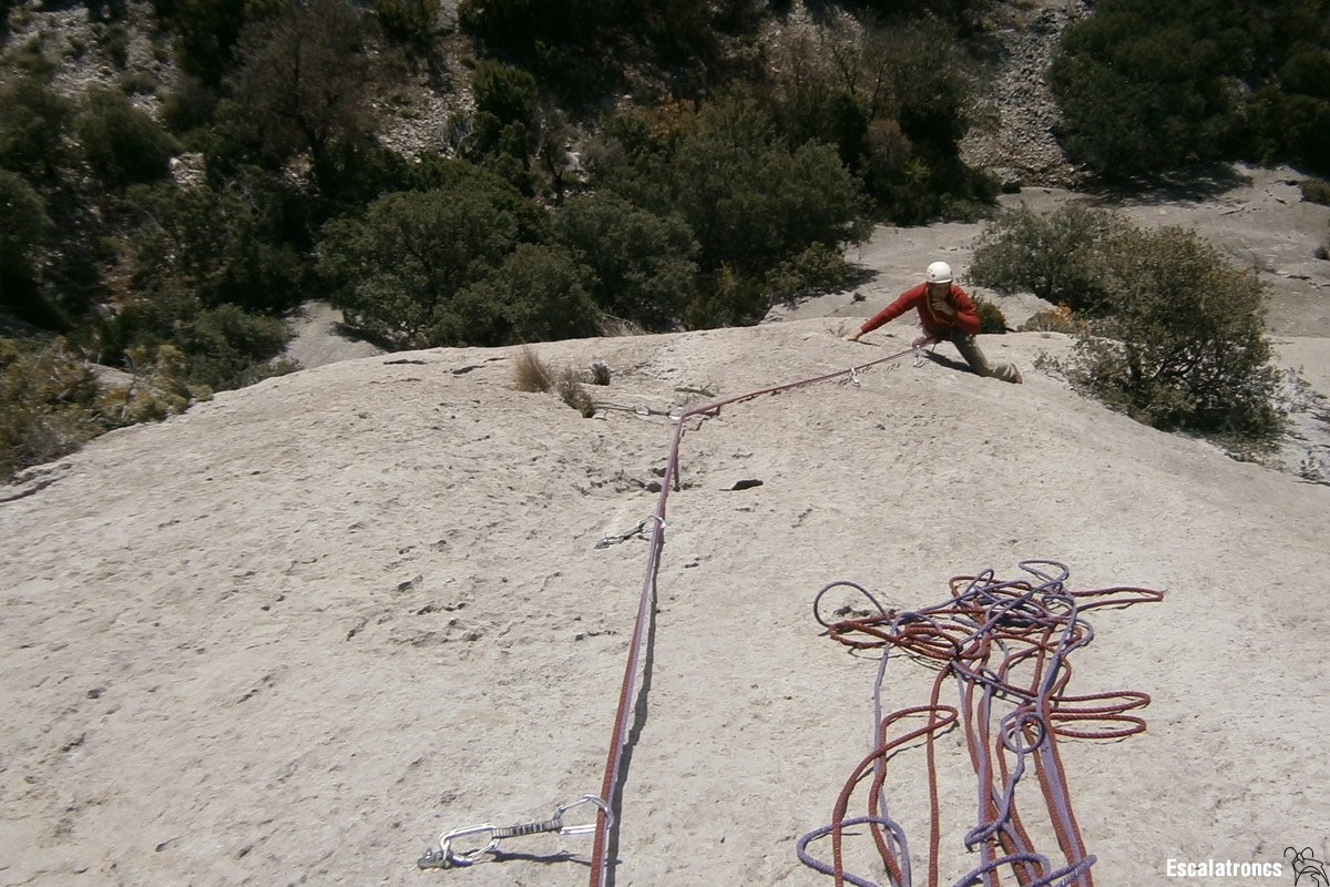 Continua la tònica del llarg anterior, escalada engrescadora i d’adherència ara amb la paret més redreçada i algun moviment més tècnic. 40 metres.