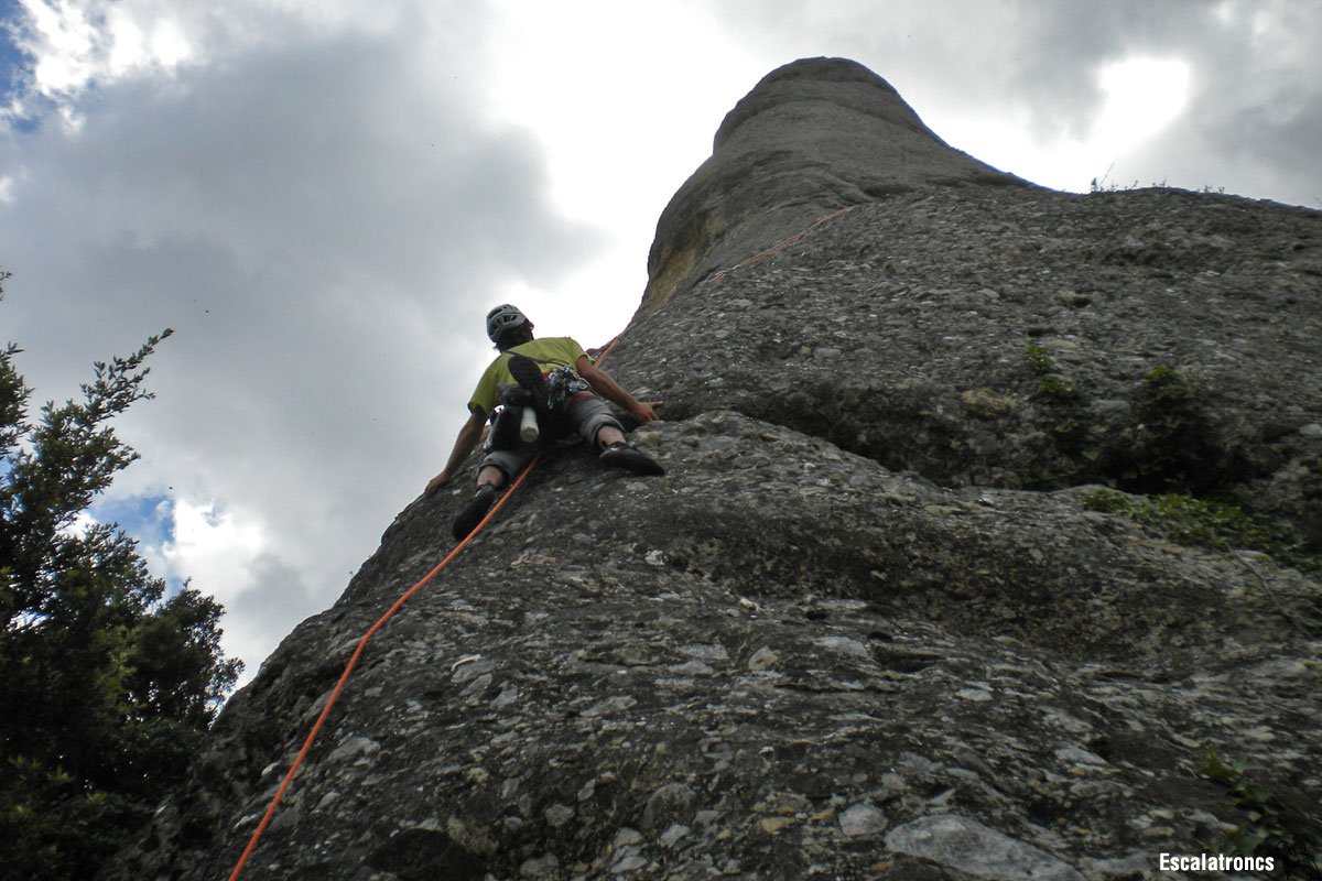 La primera tirada ens regala una preciosa escalada de finura, sobre roca molt bona i de presa petita, on l’equilibri i la col·locació prenen tot el protagonisme. Haurem d’anar fent ziga-zagues negociant amb el rocam la millor presa, que mai serà massa grossa. Després d’un primer tram vertical la dificultat minva i les assegurances desapareixen, però podrem protegir-nos convenientment amb un Camalot #1 mercès una pregona fissura. 40 metres.