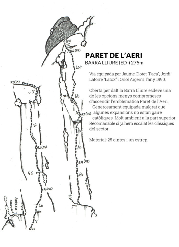 La Barra lliure és, malgrat que algun dels seus equipadors s’entesti a dir el contrari, una proposta prou interessant per escalar a la Paret de l’Aeri. De caire esportiu, segur no és de les més maques, però un cop tenim la majoria de clàssiques al sarró la Barra Lliure esdevé una bona opció.