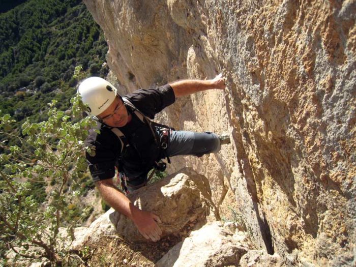 - Equipament: Via pràcticament equipada amb parabolts i claus