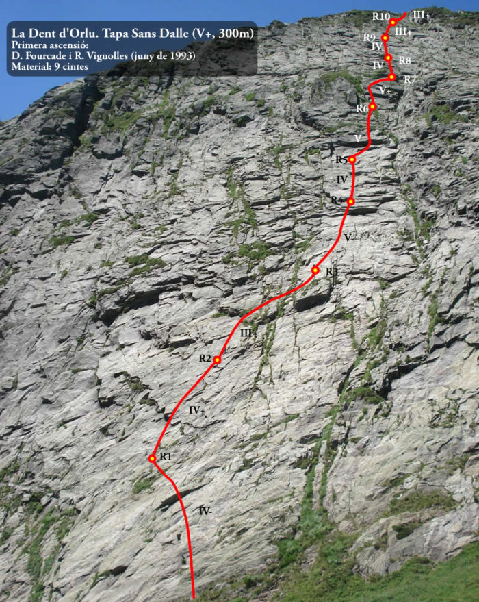 Tapa Sans Dalle és la manera perfecta de prendre contacte amb la Dent d’Orlu. Un itinerari de 300 metres, ben assegurat i amb un grau molt assequible.