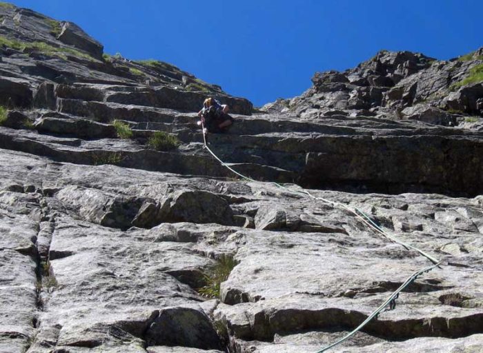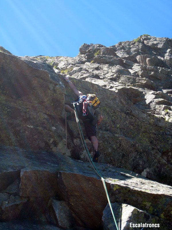 Placa llisa amb petits bonyets per anar-se agafant. Llarg d’adherència. 40 metres.