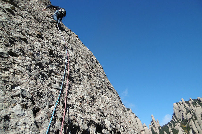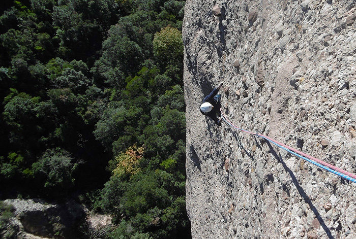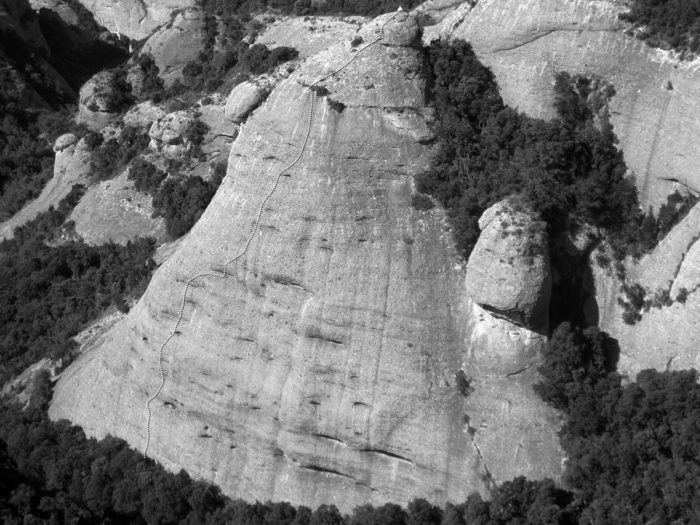 La Pluja d’Idees és la primera via que trobem en aquesta banda de la roca. Es tracta d’un itinerari de caràcter esportiu, ben equipat amb parabolts i que gaudeix d’un rocam de primera. Una via ràpida per gaudir d’aquest meravellós indret que a la tardor es vesteix amb els seus colors de gala.