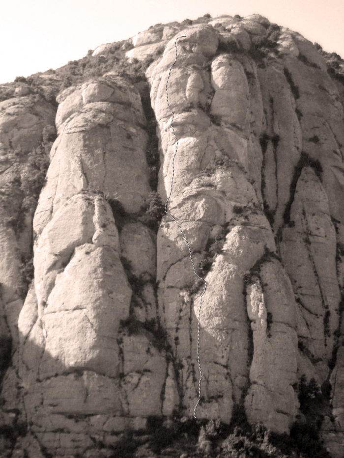 Totalment equipada hi destaca per bonica la primera tirada, pura continuïtat. El tercer llarg, amb un inici tècnic i vertical té la particularitat de superar un sostre equipat amb preses artificials (??). La darrera tirada la podem fer recte (6b+), per l’esquerra (6c+) o bé anar a buscar el darrer llarg de la Gastón (6a+).