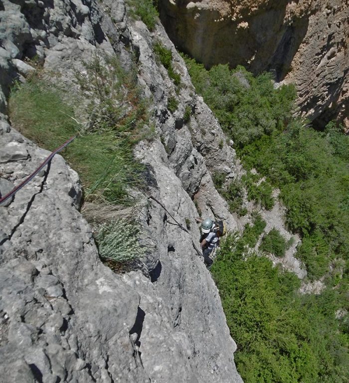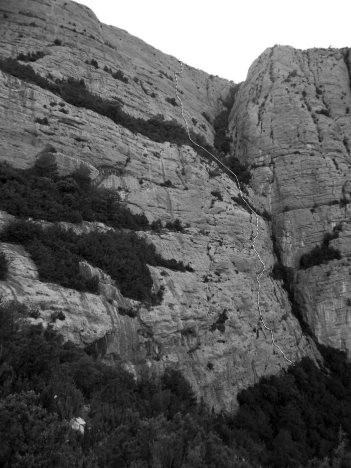 De recorregut sinuós, la via és absolutament lògica, cercant en tot moment les debilitats de la Paret. El llarg més exigent és el segon, on toca fer algun pas obligat amb l’assegurança i la lleixa als peus. Les dos tirades de després del bosc tenen algun tram exposat però fàcil i amb alguna crosteta. El darrer llarg navega a dretes per un mur vertical, és la cirereta del pastís.