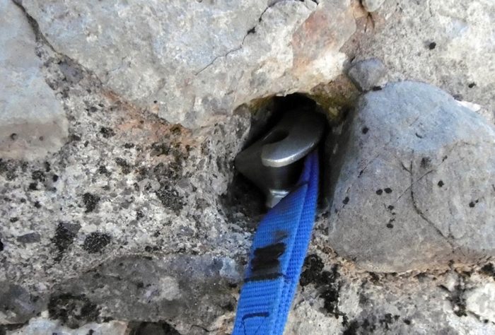 • Material: 10 cintes, alguna baga, tricam blau i negre, Camalot #1