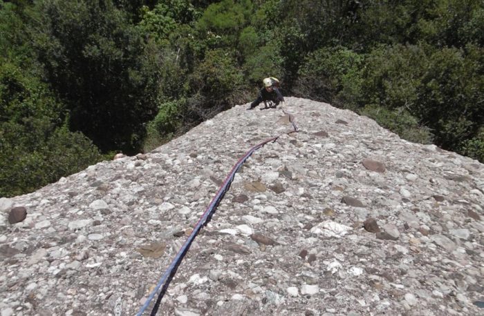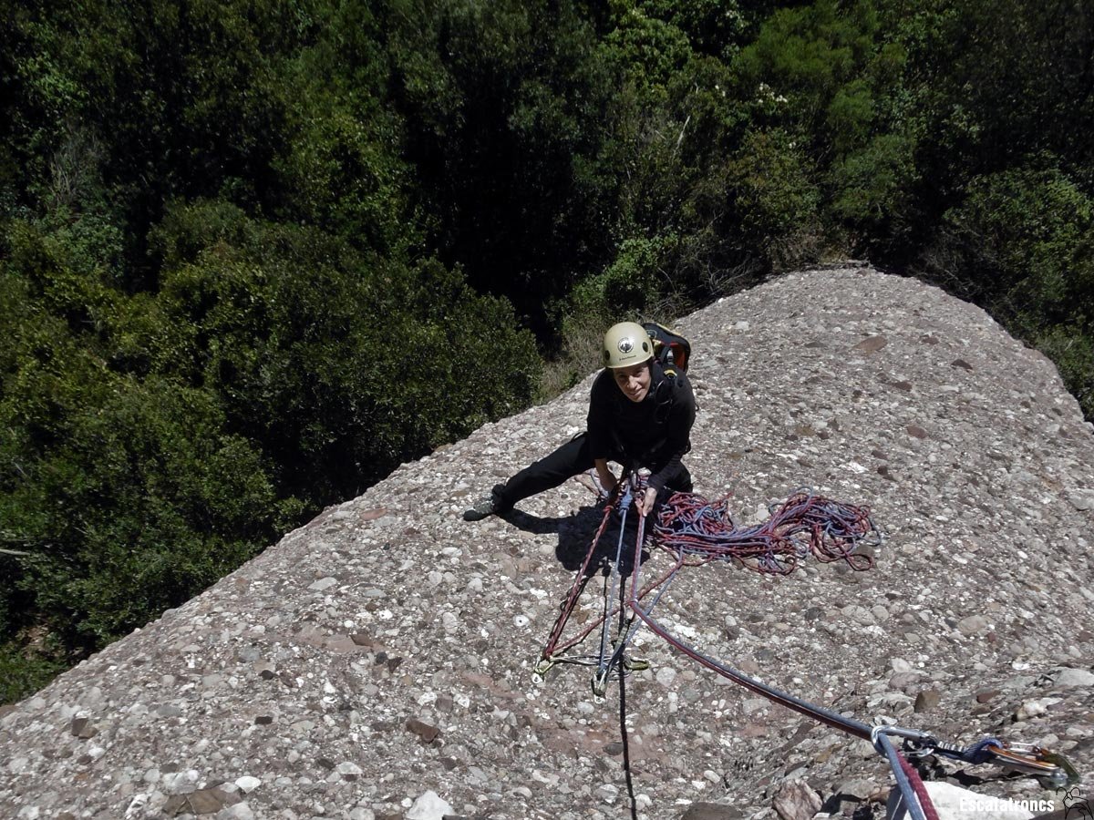 Deliciós itinerari, fàcil, molt assegurat i sobre roca exel·lent. El pas clau el trobarem a la sortida de la reunió, un pas de V per encintar l’expansió.