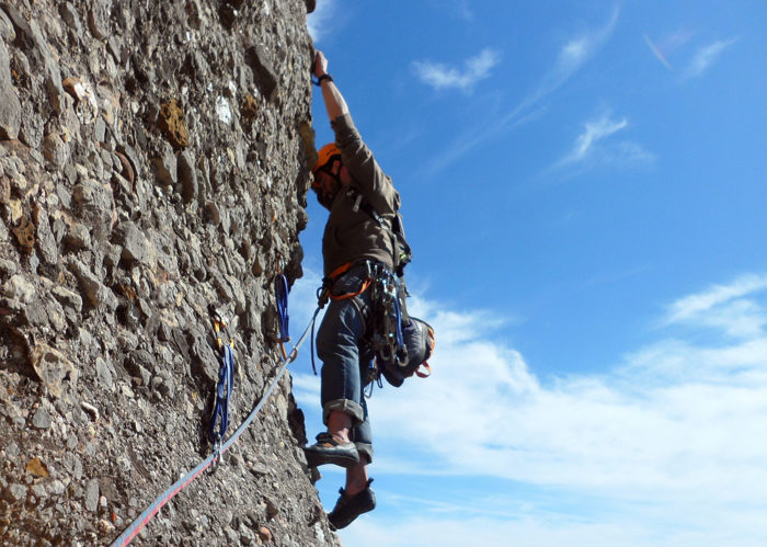 Des del cim desgrimpem pel vessant nord fins el coll que forma la nostra agulla amb la Cristobalita Inferior.