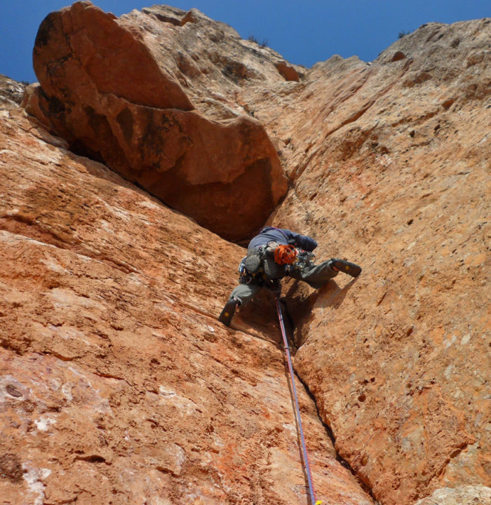 - Material: 12 cintes, joc de Camalots del #0.4 al #2 repetint #0.4, #0.75 i #1. Estreps i opcionalment un petit joc de tascons